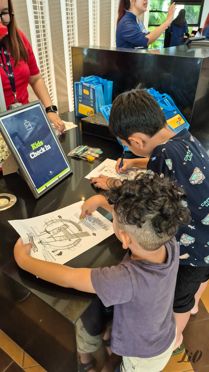 Then came the best part with the kids’ check-in experience. Shortly after settling into our room, we received a courtesy call from the front desk inviting the kids to participate in a special check-in activity. Naturally, they were buzzing with excitement. We headed back downstairs, and sure enough, there was a little check-in corner set up just for kids, complete with forms to fill out, colour markers, and friendly staff ready to engage with them like little VIP guests.